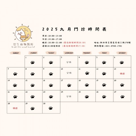 親愛的毛爸媽~ 附圖是我們12月份的營業時間表 ▲12月除每週三的公休日之外,#12月25日 為國定假日,會額外休診一天唷 【預約提醒】 為了提供更完善的醫療品質並節省您寶貴的等候時間,本院採預約優先制。 選擇現場候診的家長,若毛孩沒有危及性命的緊急狀況,我們會等處理完所有的預約門診後,有空檔才幫您看診。 建議您提前透過[電話] 或[官方Line帳號] 預...