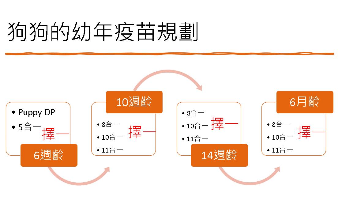 基本上按照圖一(幼犬)、圖二(幼貓)的注射時間就好,這些是我們旭生建議的施打時間。