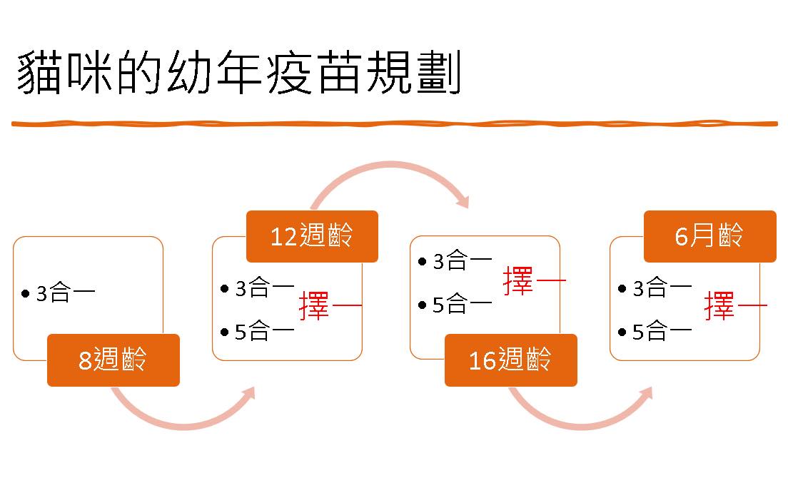 但要特別解釋的一點就是,幼貓的疫苗規劃上,我們跟WSAVA的建議時間會略有不同,若有想讓幼貓施打無佐劑五合一疫苗的家長們,再麻煩詳讀以下內容。