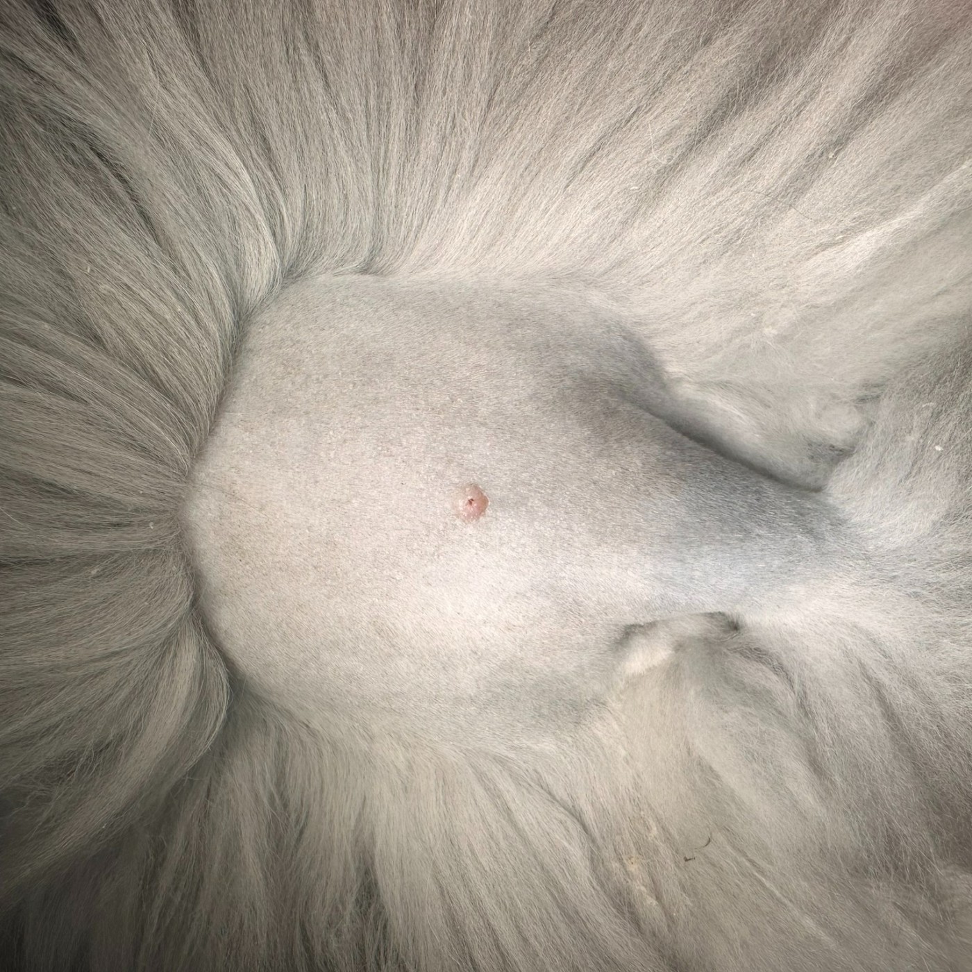所幸,本篇的主角在我們進行細針穿刺(Fine Needle Aspiration)與細胞學檢查後,發現抹片下是充滿大量藍紫色顆粒的圓形細胞,為典型分化良好(Typical / Well-differentiated / Mastocytic)的皮膚型肥大細胞瘤,因此我們只需要沿著腫瘤外圍 0.5–1 公分的邊界切除即可。